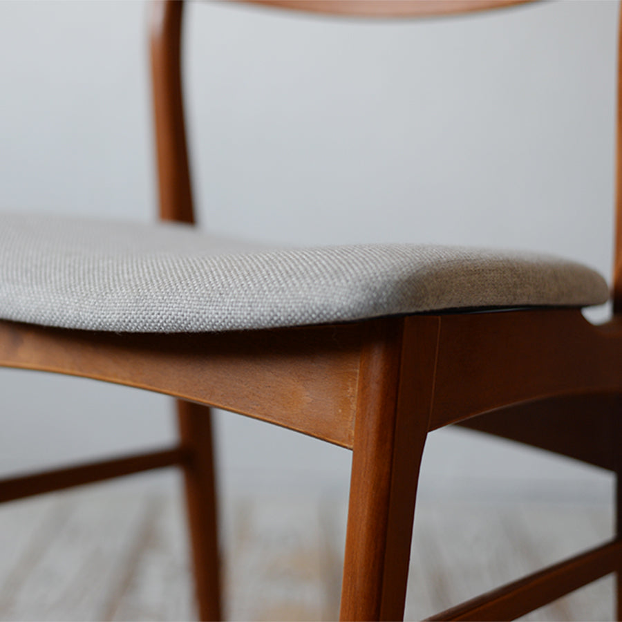 ダイニングチェア R706D208Dチーク突板の背板とビーチ材フレームを組み合わせた、スタンダードな北欧ヴィンテージのダイニングチェア。