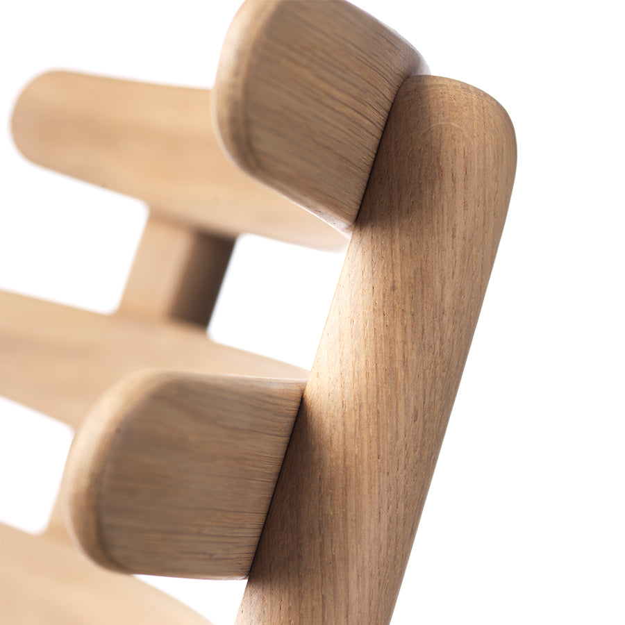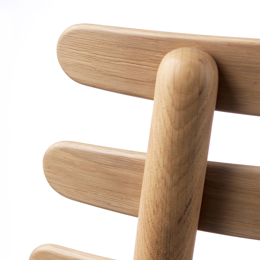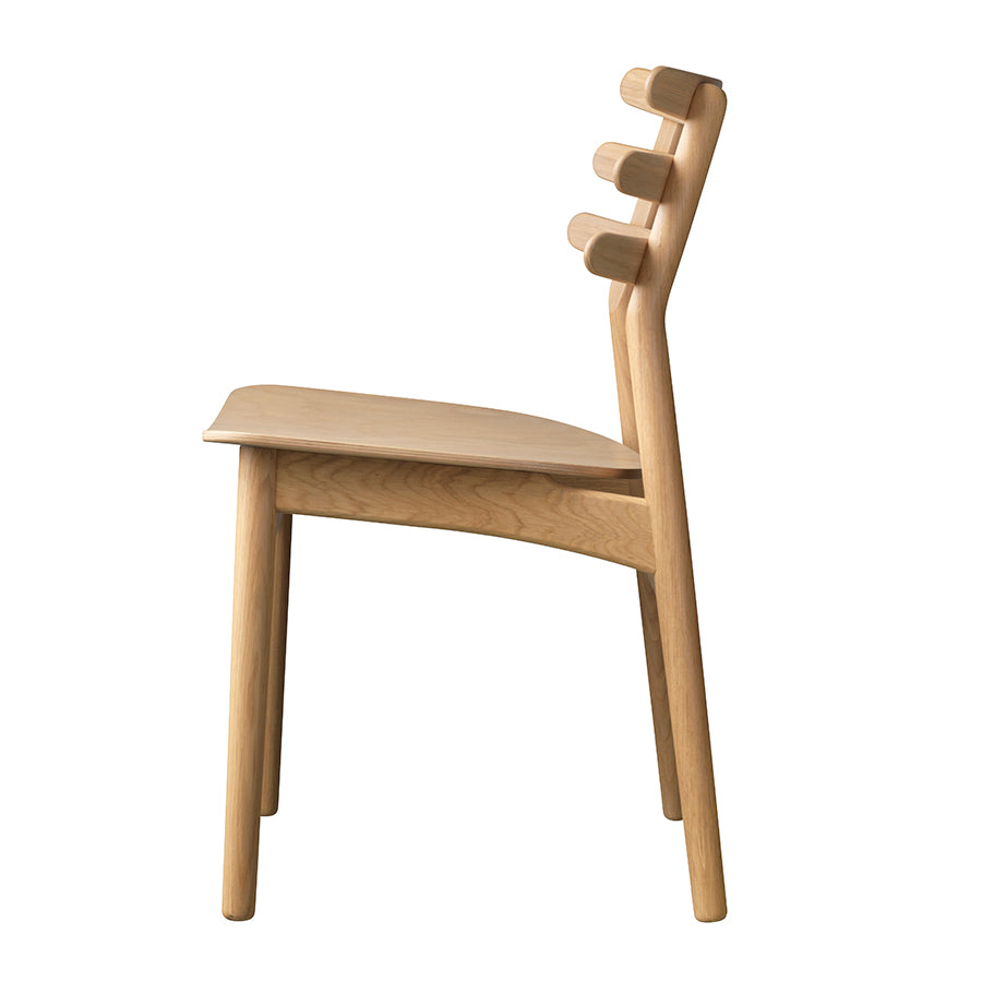 丸みをおびた3本の笠木が独創的なダイニングチェア。 美しさと機能性を兼ね備えた主役になる一脚。
