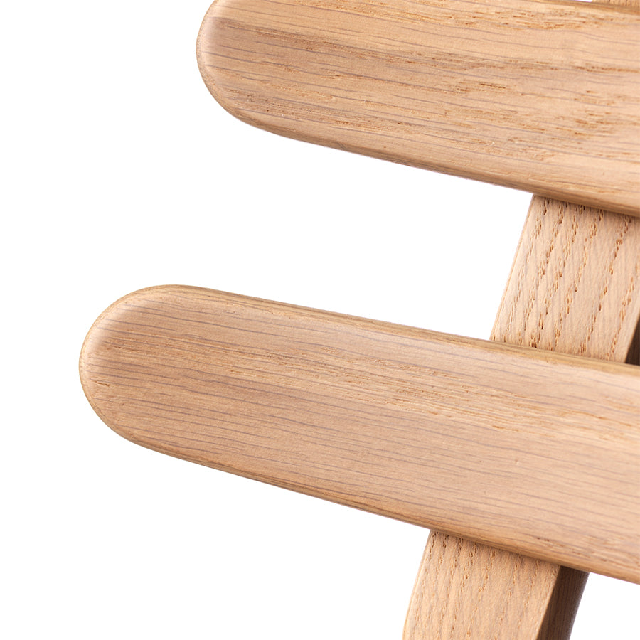 モーエンセンが初代FDBモブラー企画デザイン担当責任者を辞める際に、モーエンセンの親友でもあるハンス・J・ウェグナーに推挙され2代目企画デザイン担当責任者の大役についたのがポール・M・ヴォルタです。ハンス・オルセンの工房でも修行をしていた家具職人で、家具製作に非常に長けていました。 3本の丸みを帯びた笠木から構成される背は非常に独創的で、美しさと安定した座り心地を与えてくれます。 ヴォルタがFDBモブラーから独立した後に生み出す彼の代表作コロナチェアはこの流れを汲んでおり、ヴォルタらしさが非常に出ている作品です。