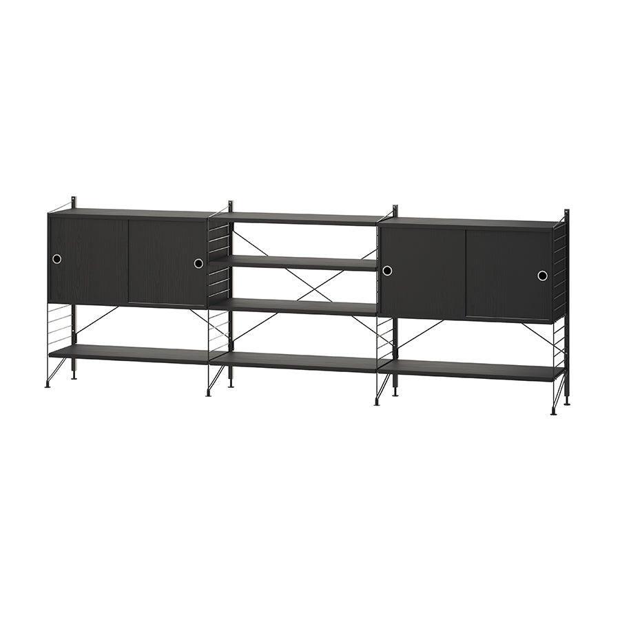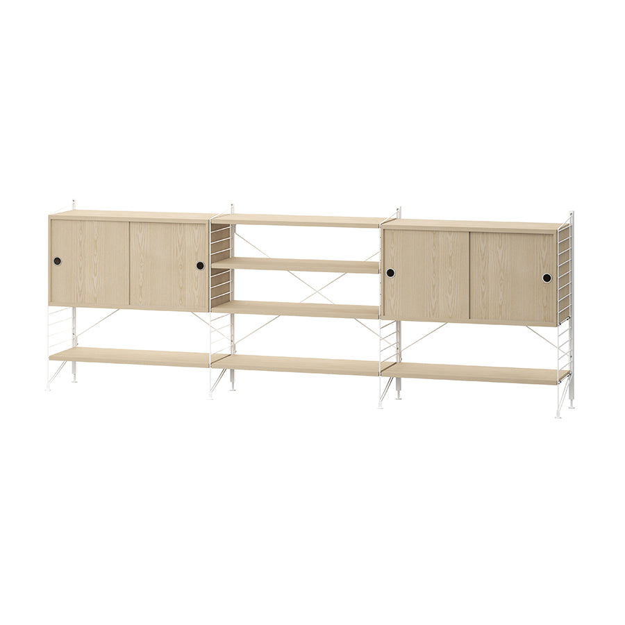 String フリースタンドシェルフ W78 D30 ×3列 棚板+キャビネット×2