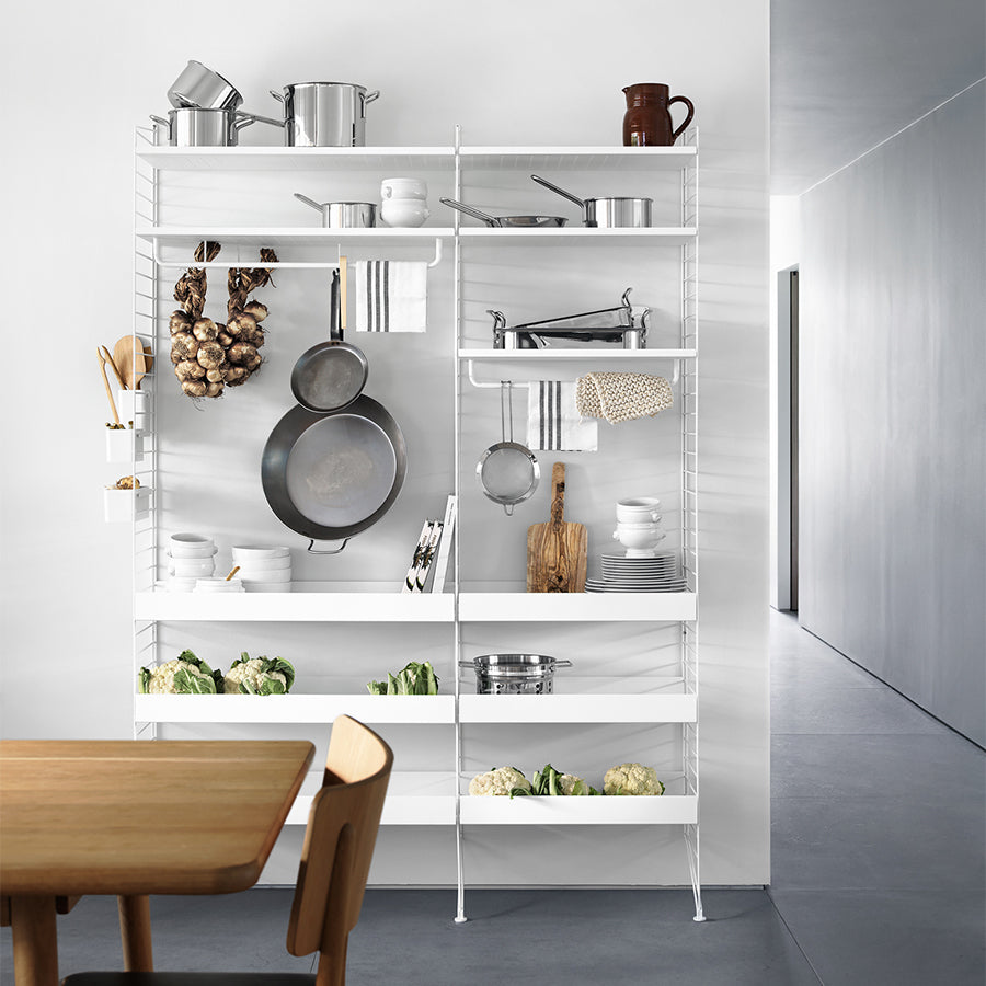 それは壁に取り付けられ、柔軟性に優れ、かつ軽やかでミニマムな収納棚で、これこそがString®の始まりとなりました。