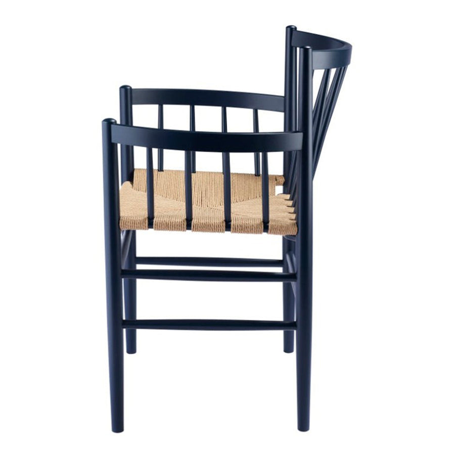J80がこれまでのチェアと大きく違う点は木部が非常に細く、モーエンセンが採用して以来、ヴォルタとヨハンソンの採用することのなかったペーパーコードを座面に用いたことです。 また蒸気でひねりを加えたオークの背はJ80の為に開発されました。 それらを採用することで従来より大きさの割に軽く、柔らかい座り心地と快適な背を実現しました。
