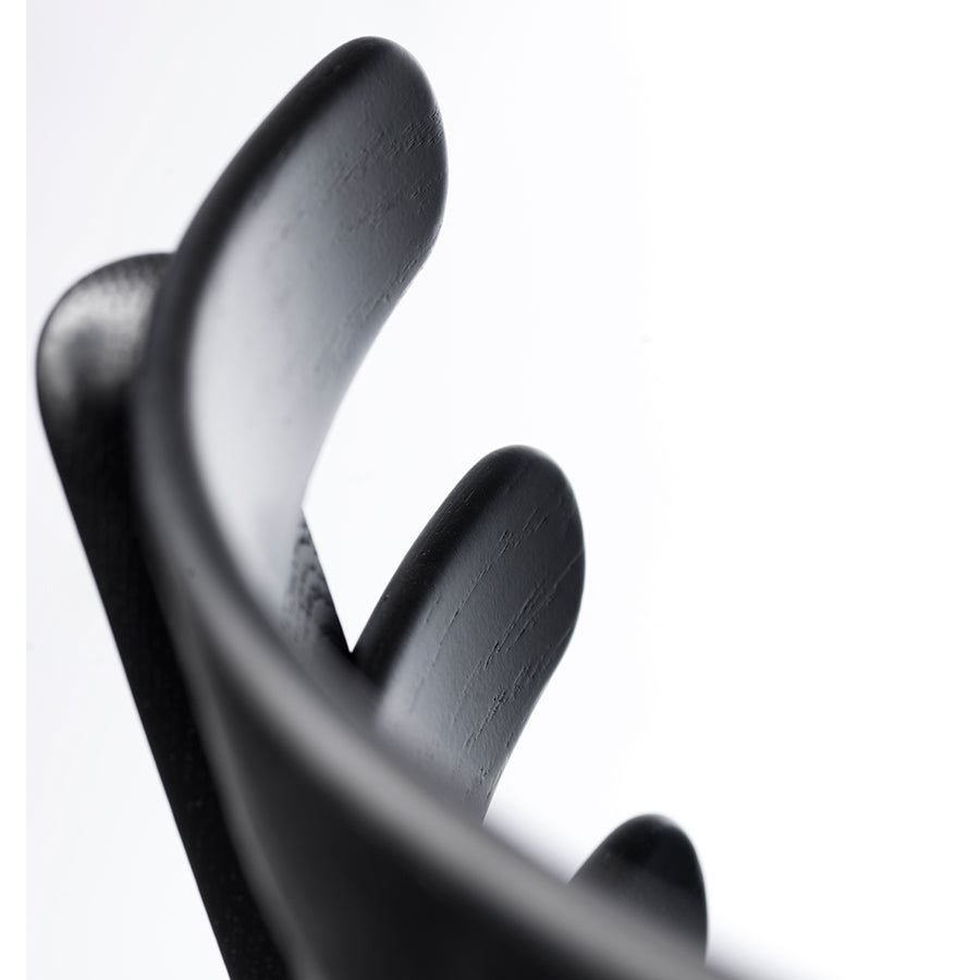 丸みをおびた3本の笠木が独創的なダイニングチェア。 美しさと機能性を兼ね備えた主役になる一脚。 座面には品質の高いフルグレインレザーを採用。