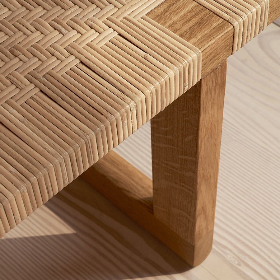 シンプルなデザインながらも、木部の継手や面取り加工、ラタンの二重に施した籐張り加工などディテールへのこだわりを感じられます。