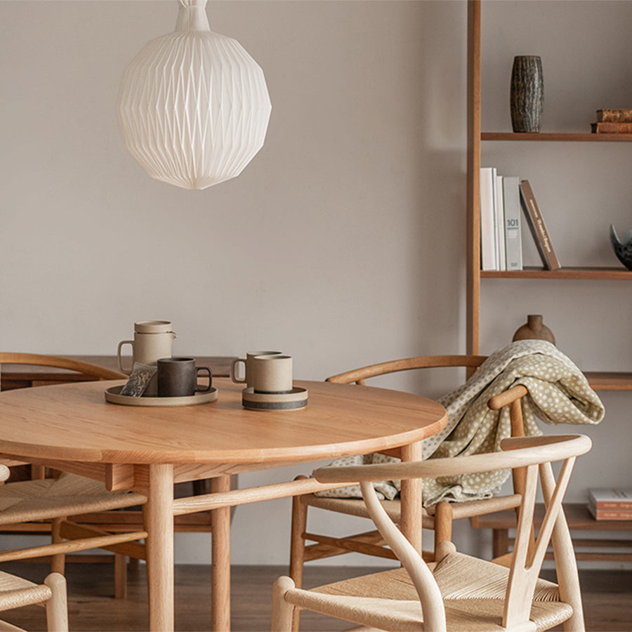 ナチュラルテイストあふれる色合いと、美しく映える木目が人気の素材です。無垢材ならではのあたたかな木の質感が魅力で、明るいお部屋づくりにおすすめ。木の密度が高く、非常に頑丈なのも特徴です。