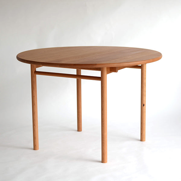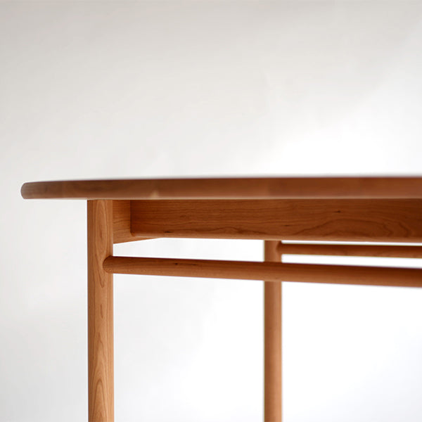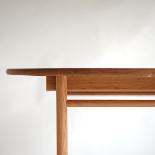 緩やかなアールのついた天板の木口や、四本脚のシルエットが特徴的。