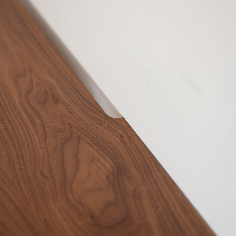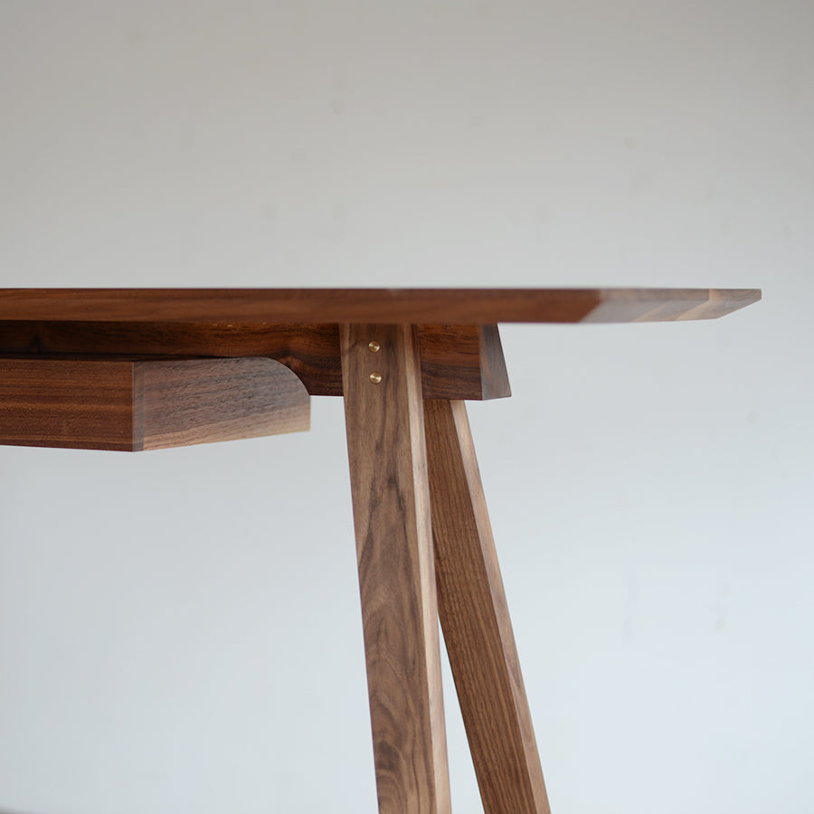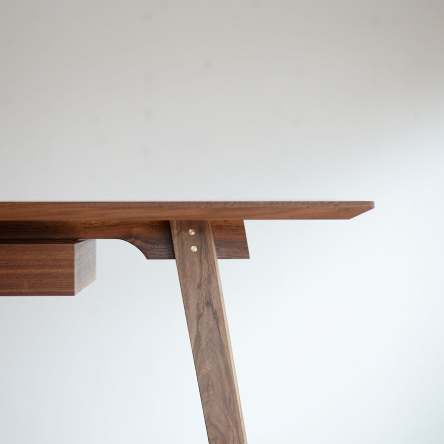 天板と脚をつなぎ合わせる一本の幕板。特徴となる見た目だけでなくテーブルにかかる荷重を均等に脚へと伝える構造的にも重要な役割をしています。