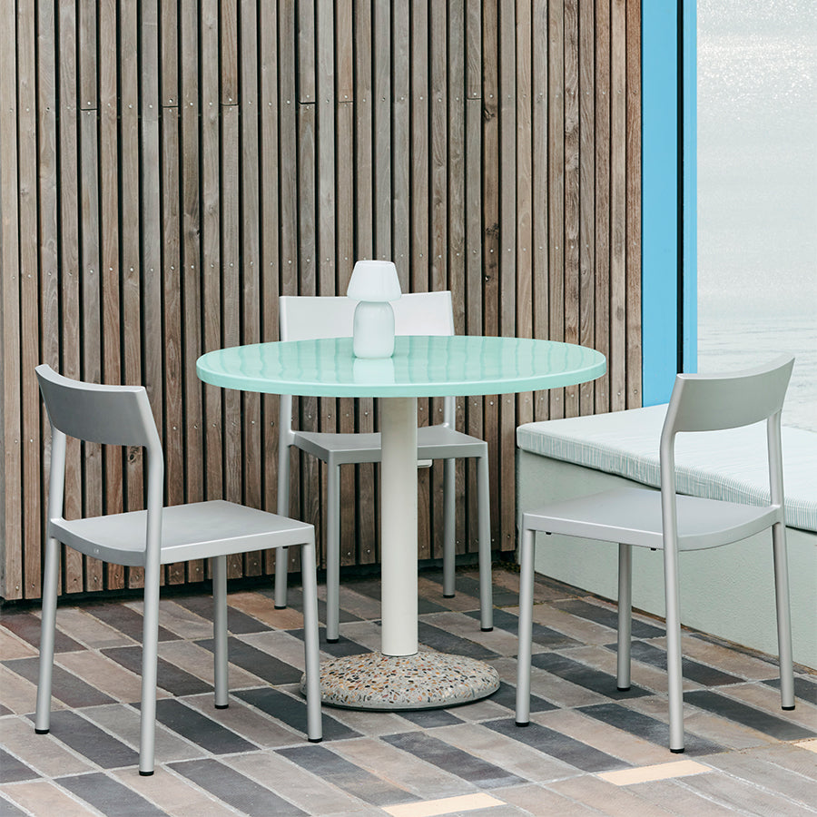 テラスやベランダ、屋内のダイニングにも自然に馴染むデザインで、シーンを問わず使える北欧ラウンドテーブルとして活躍します。