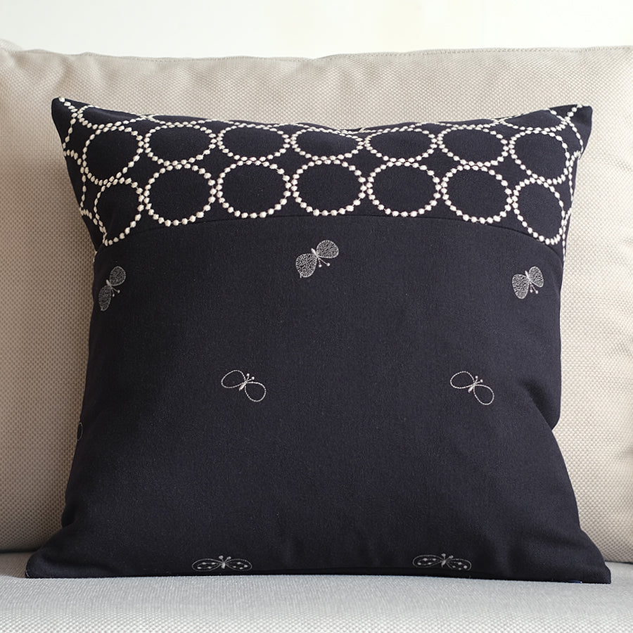 mina perhonen dop 「tambourine × choucho」クッションカバー インディゴ×インディゴ