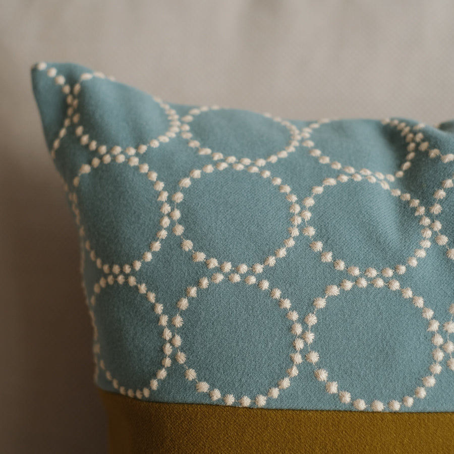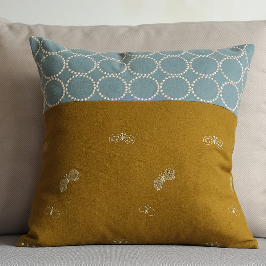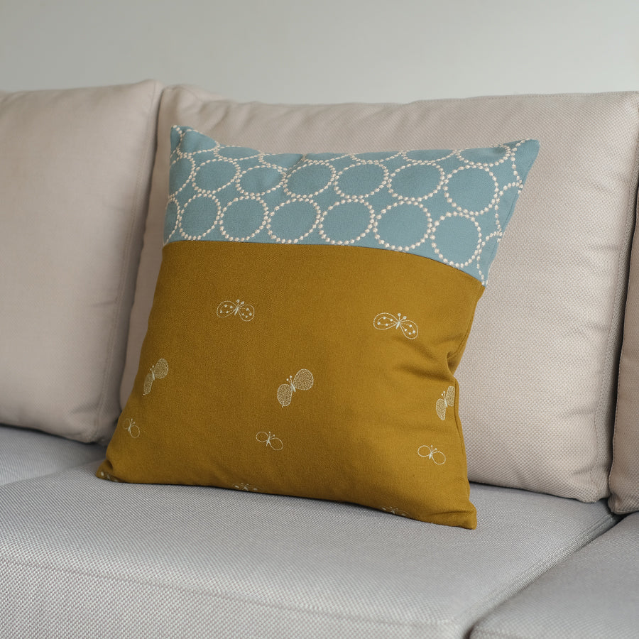 mina perhonen dop 「tambourine × choucho」クッションカバー ライトブルー×オリーブ