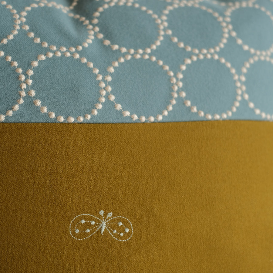 mina perhonen dop 「tambourine × choucho」クッションカバー ライトブルー×オリーブ ミナペルホネン ドップ 「タンバリン×チョウチョ」クッションカバー ライトブルー×オリーブ