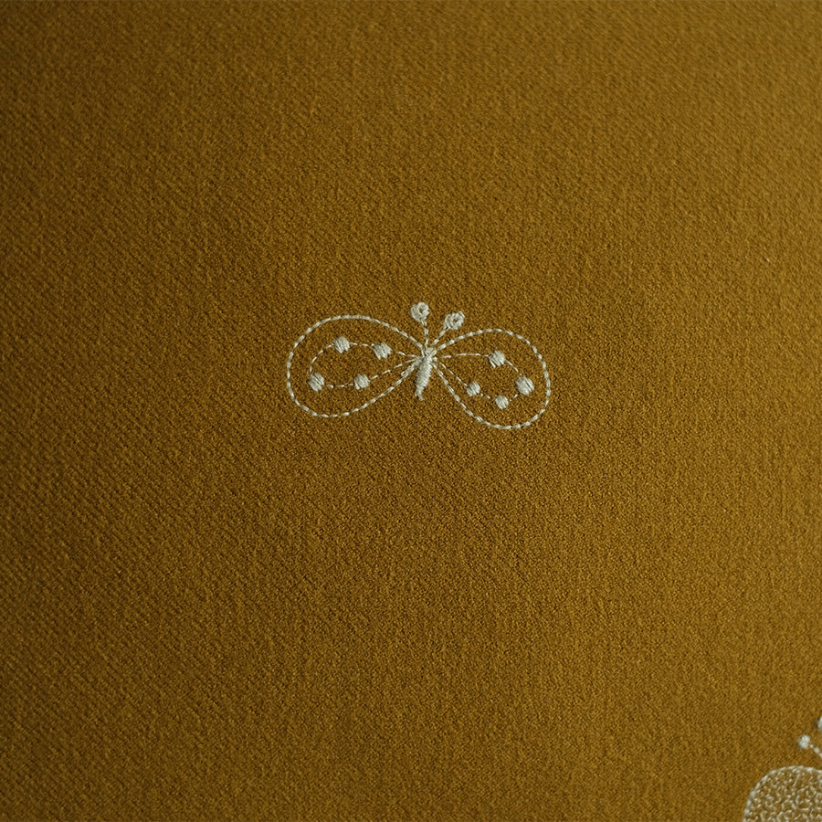 一度刺繍をした上からさらに刺繍を重ねさらに立体感を出しており、使い込むほどに表情を変えていきます。