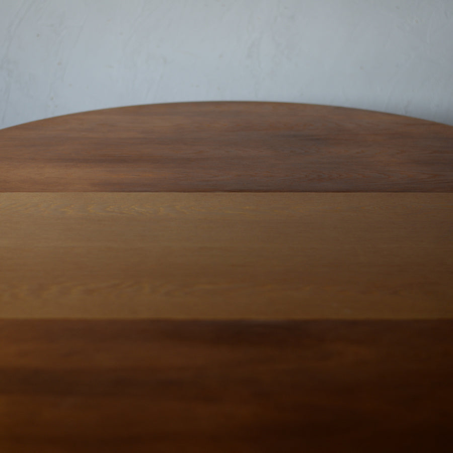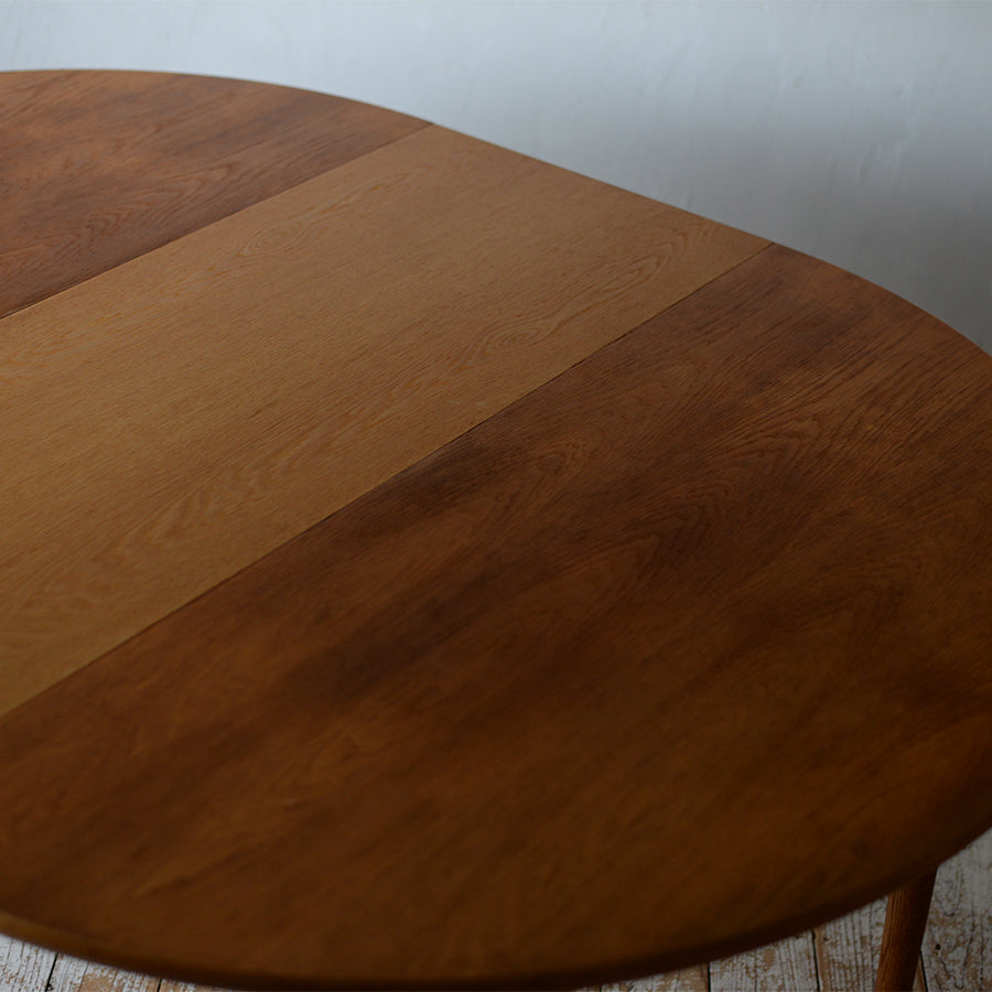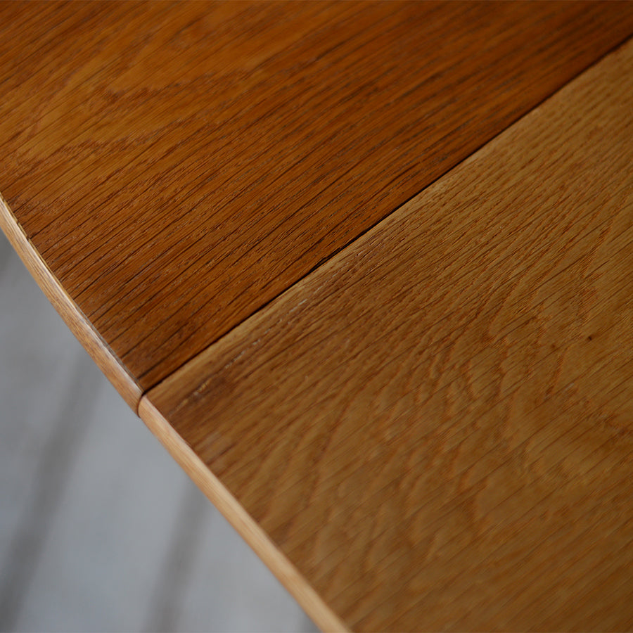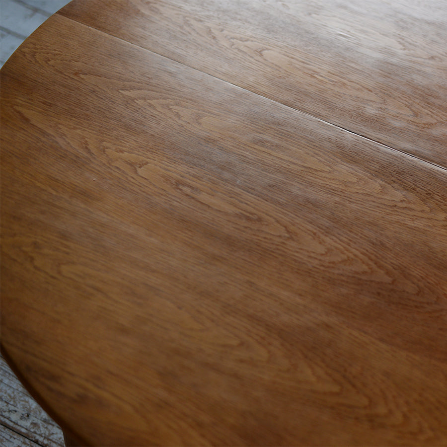 付属の伸長板を追加することで天板は楕円形へと変化し、来客時には6人掛けのダイニングテーブルとして使用できます。