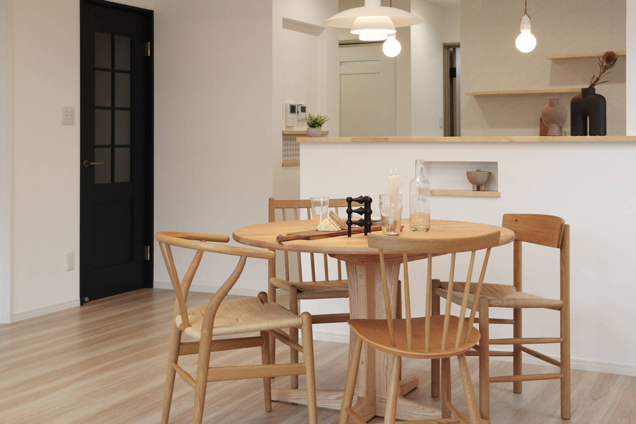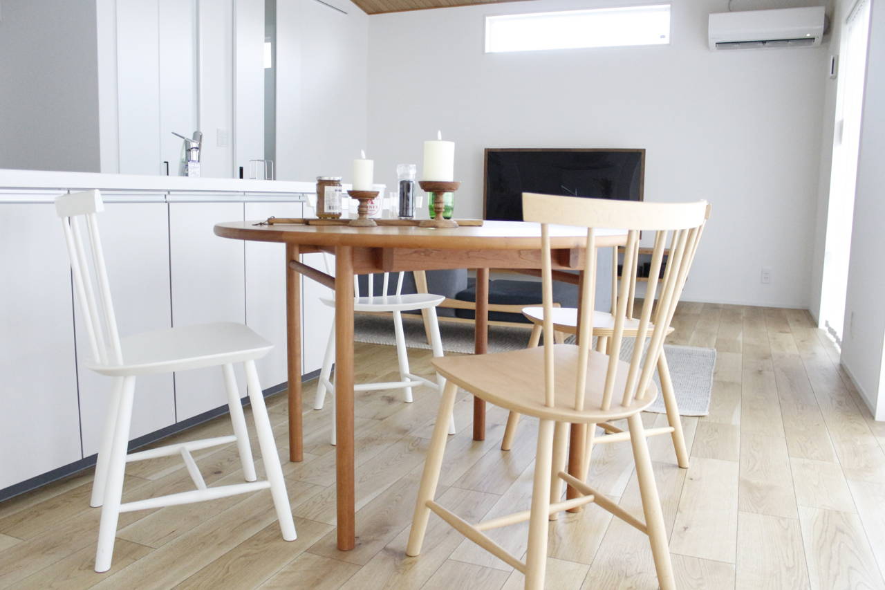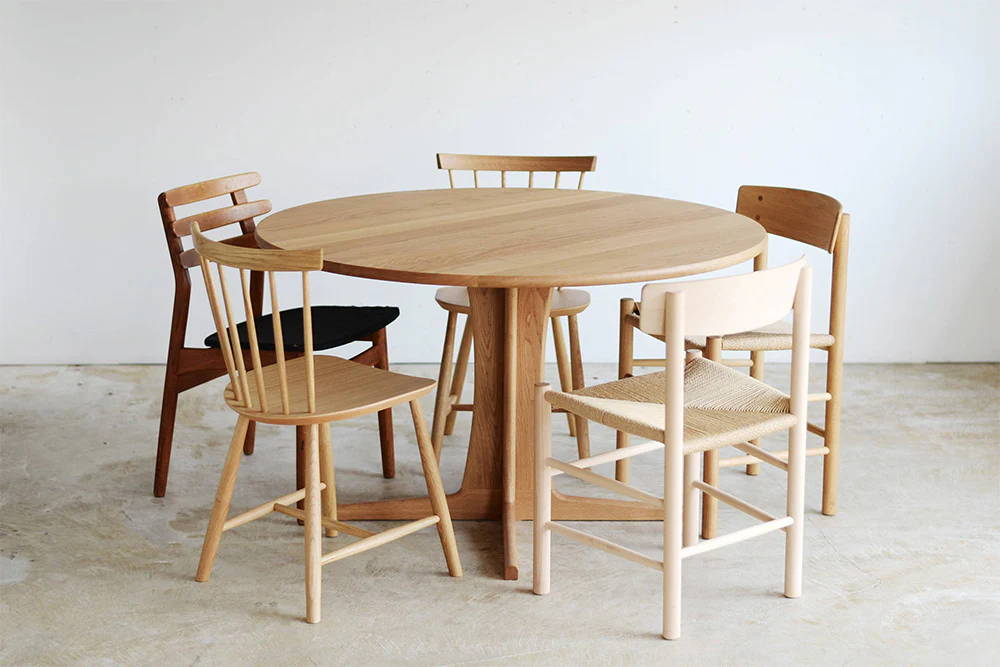 子育てがひと段落して、暮らしが少し静かになる頃。汚れの心配よりも、「これから長く使うものだから、きちんとこだわりたい」。そんなご夫婦に似合うセットです。Svendborgの無垢テーブルを舞台に、座り心地も表情も異なる北欧名作チェアを迎えることで、食卓が“日々を味わう場所”へと整っていきます。