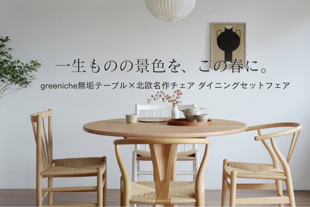 この春、食卓から「暮らしの景色」を整える。大切なのは、家具単体の魅力ではなく、空間に生まれる調和。greenicheは、無垢材の温もりと名作デザインが溶け合う4つのダイニングシーンを提案します。コーヒーを飲む朝も、家族と語る夜も。あなたの日常をより愛おしく変える、特別な組み合わせを見つけてください。