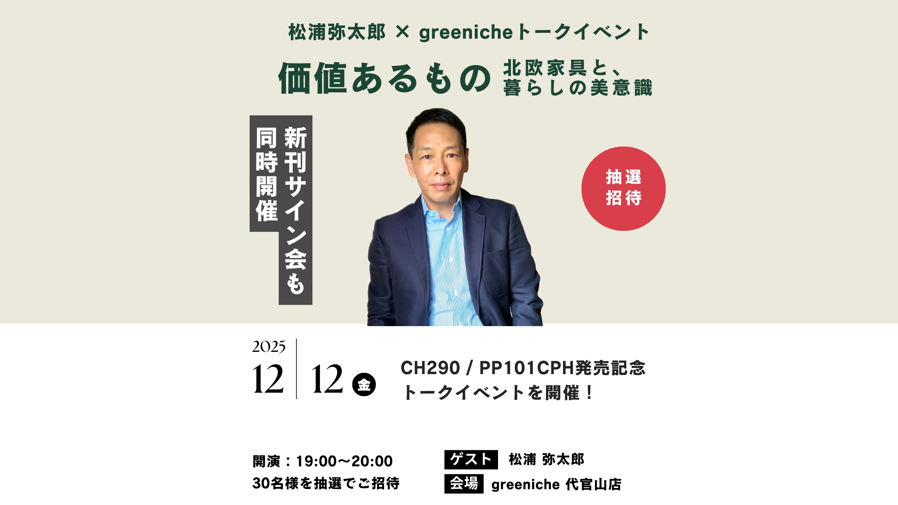 greeniche代官山店では 12月13日(土)〜21日(日)の期間限定で、《CH291(Oak)》と《PP101(Oak/Beech)》先行展示を行います。