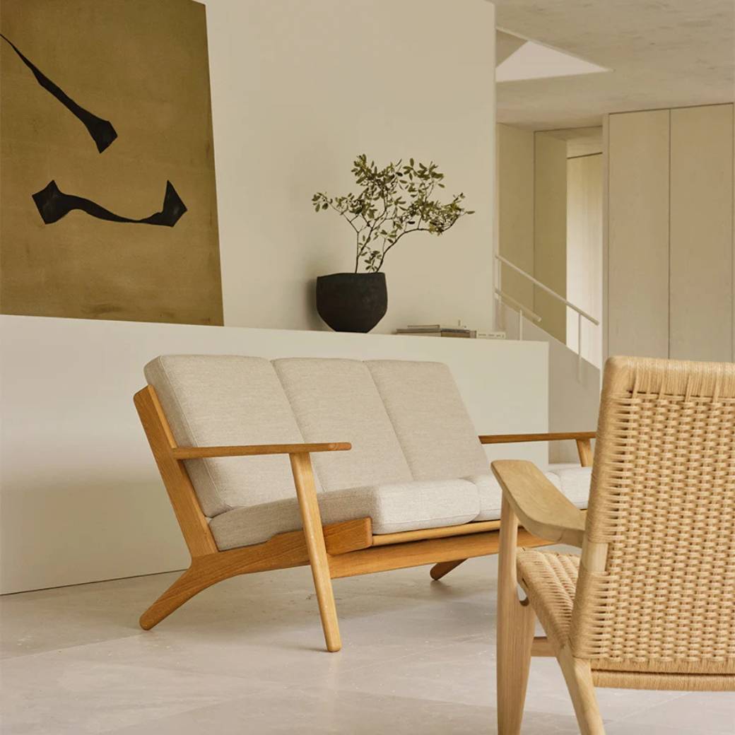 ハンス・J・ウェグナーがGETAMA社のために設計したラウンジチェア「GE290」が、Carl Hansen & Sønによって「CH290」として復刻。堅牢な木の構造と、身体をやさしく包み込む座り心地。構造・角度・寸法のひとつひとつに、ウェグナーの思想が息づいています。 ウェグナーが生涯追い求めた“人に寄り添う快適さ”と”誠実なものづくり”が、この一脚に象徴されています。