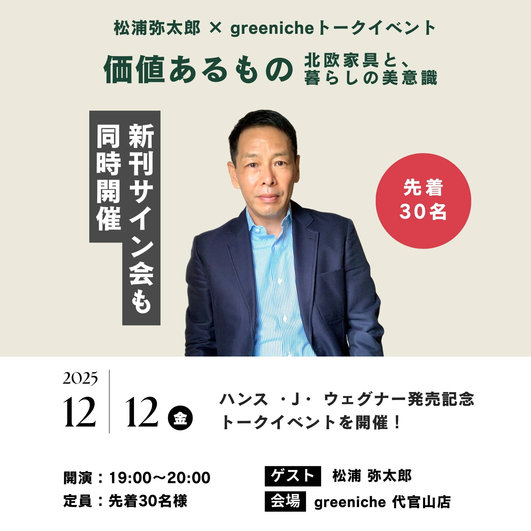 ・サイン会:『価値あるもの 衣・食・住・旅』(松浦弥太郎著、日本経済新聞出版、税込1760円)を会場内でご購入いただいた方は、書籍サイン会にもご参加いただけます。