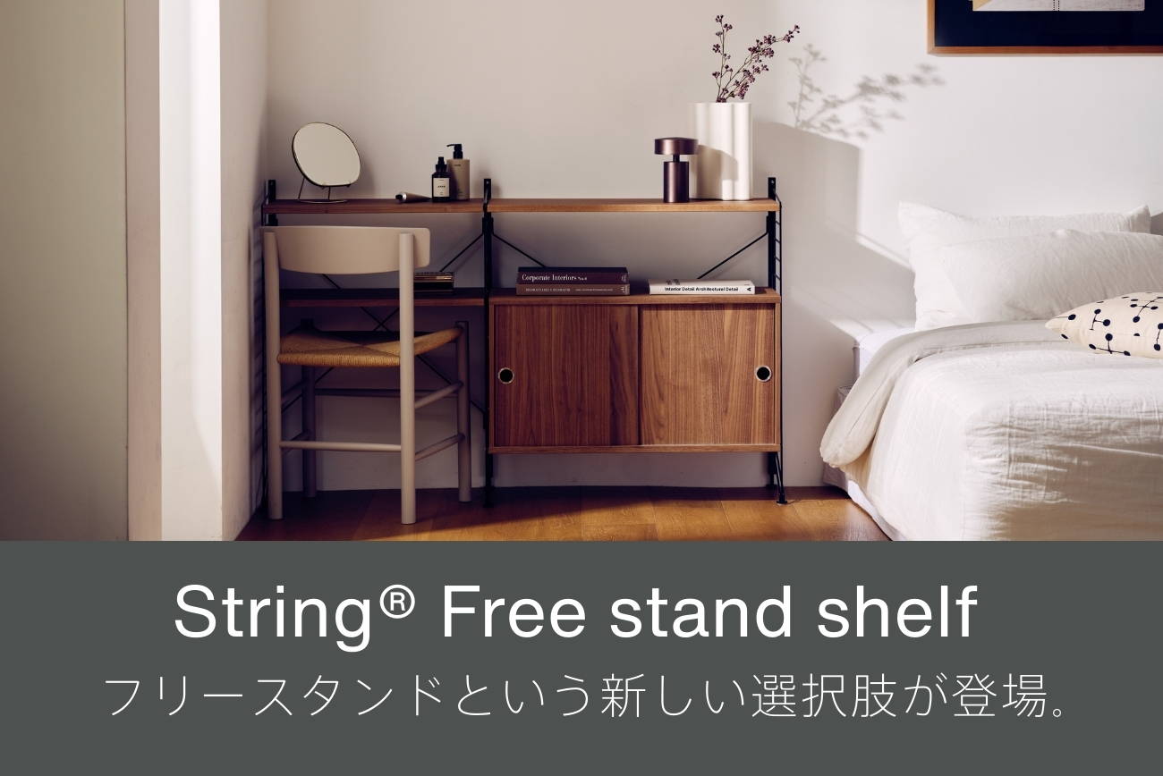 北欧を代表する壁付け収納家具ブランドString®からフリースタンドという新しい選択肢が登場。拡張性や統制の取れた美しさはそのままに、壁に穴を開けられない住まいでもString®の収納を取り入れることができます。