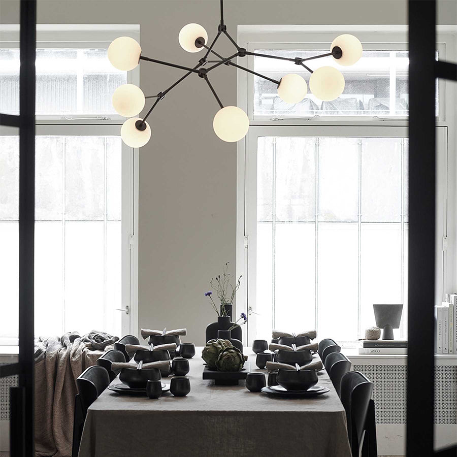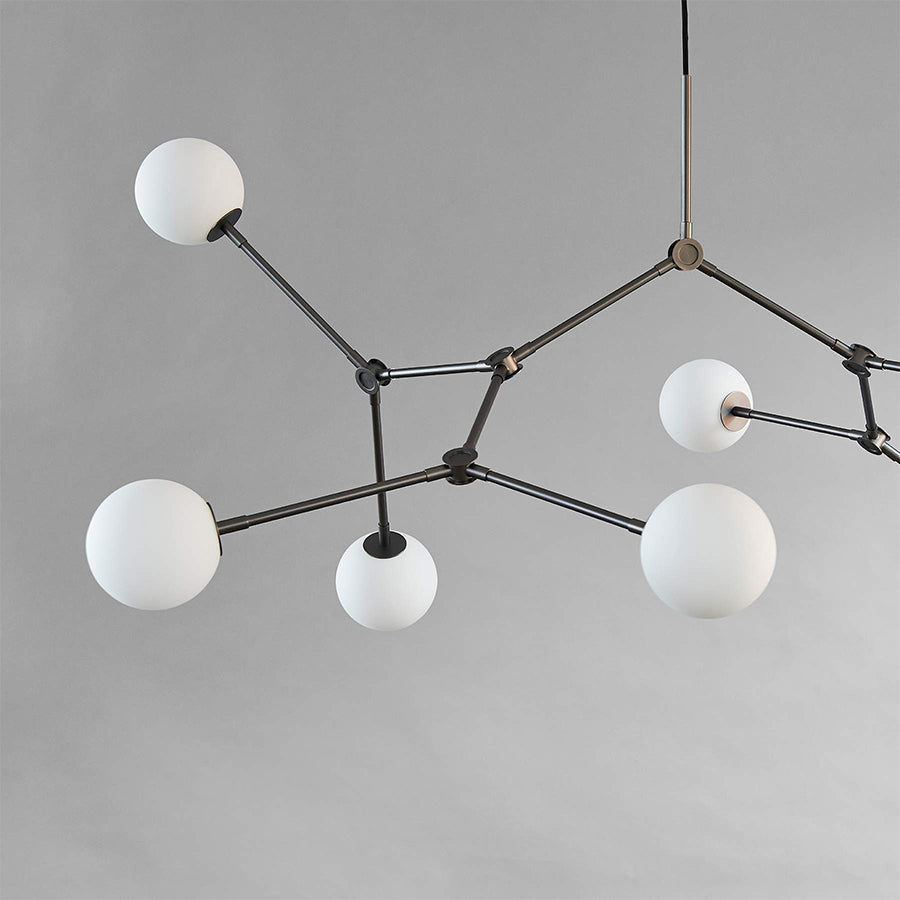 多数の腕とランプシェードで構成されているドロップシリーズのライト。