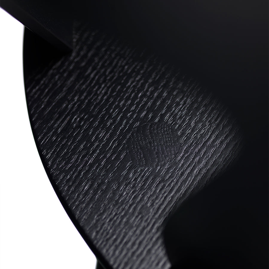 適度に傾斜したシェル型の背板が、しっかりと身体を支えます。