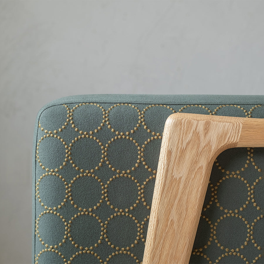 しっかりとした厚手の、ハリのある平織り生地。元は劇場ホールなどの張地として製造されており、強い耐久性を誇ります。 ウールとアクリルの混紡により、プレーンな張地でありながら高級感を感じられます。