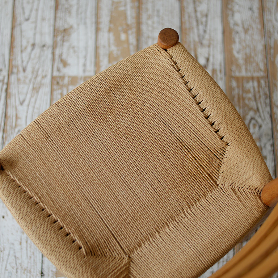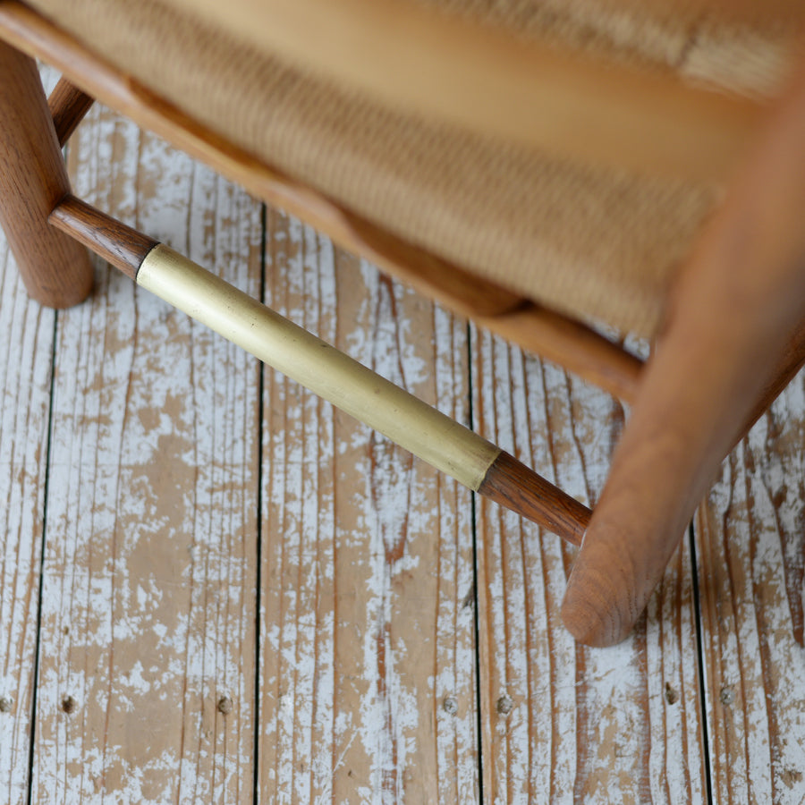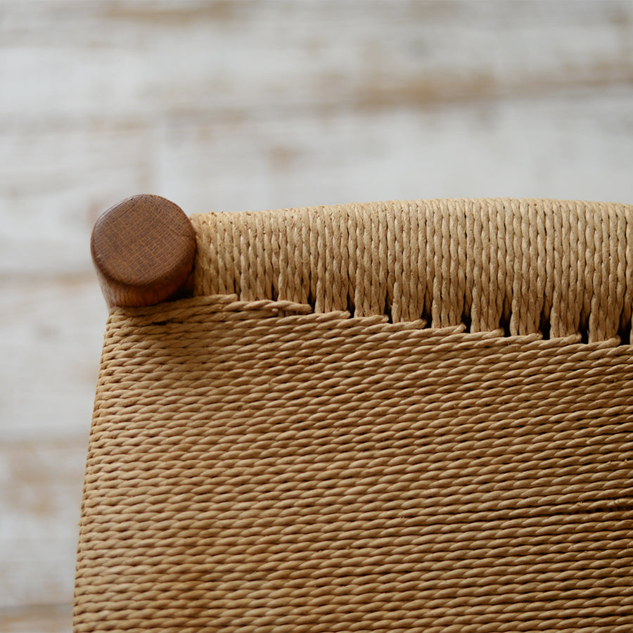 背面の貫には真鍮が配され、座面には丁寧に編まれたペーパコード。
